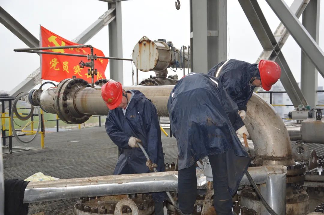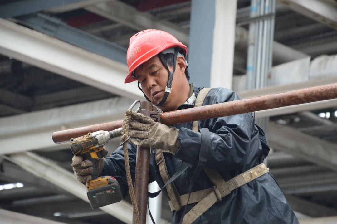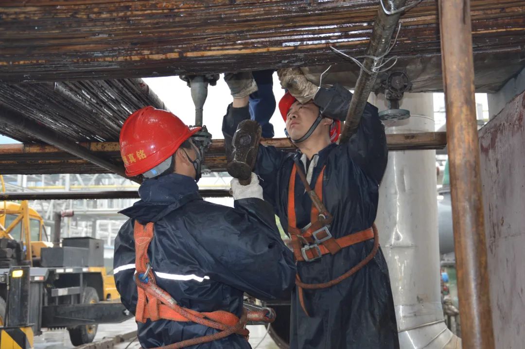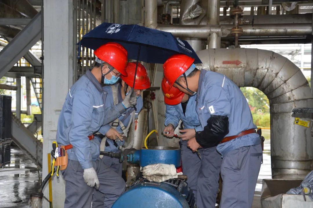 青箬笠,綠蓑衣,斜風細雨不須歸。4月1日,BDO系統(tǒng)大修開始,全體參戰(zhàn)人員發(fā)揚“三牛”精神,與天地爭鋒,和時間較量,爭分奪秒奮戰(zhàn)在檢修現(xiàn)場。維保分廠百余名員工多工種協(xié)作,分秒必爭,管理人員24小時在崗,統(tǒng)籌協(xié)調(diào),有序推進,鮮艷的黨旗迎風飄展,醒目的安全帽雨中穿梭,各式各樣的雨衣成了緊張忙碌的檢修現(xiàn)場最靚的“時裝”。(吳穎)
