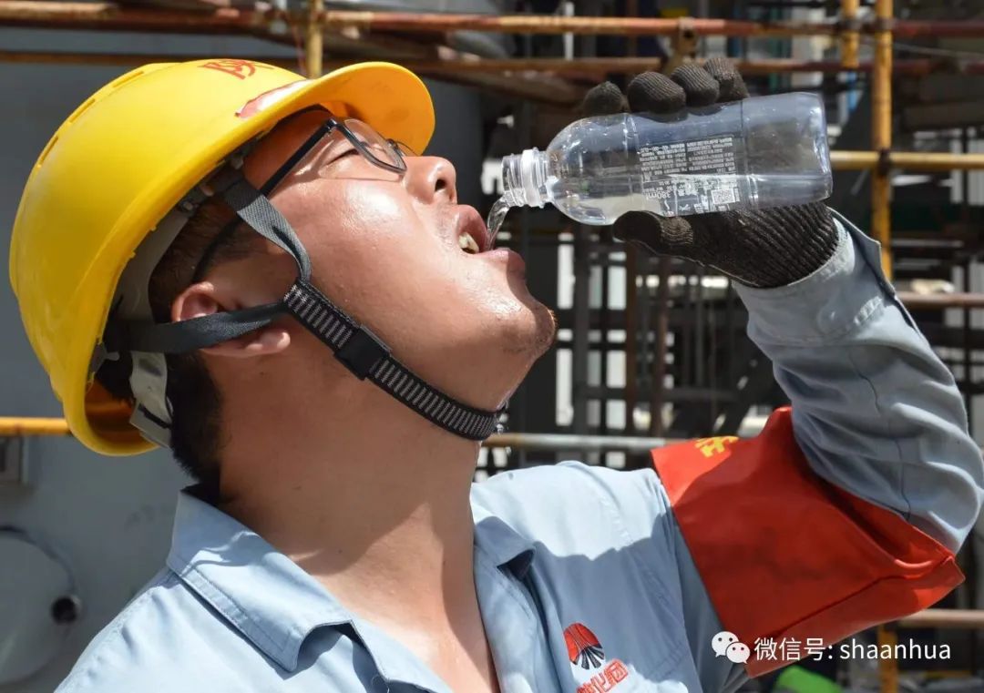 日輪當(dāng)午凝不去,萬(wàn)國(guó)如在洪爐中。連續(xù)多日高溫,透藍(lán)的天空,懸著火球般的太陽(yáng),漂浮的幾絲云彩也沒(méi)有遮擋的力氣和勇氣,任由陽(yáng)光在人們頭頂肆虐。在這份炙烤下,有這樣一群人,堅(jiān)守在陜化鋼鐵叢林間揮汗如雨,如同白居易筆下的描寫(xiě)的那樣: 足蒸暑土氣,背灼炎天光。 力盡不知熱,但惜夏日長(zhǎng)。 這群人高溫下的堅(jiān)守,已經(jīng)無(wú)法用唯美的語(yǔ)言贊美它們,唯有肅然起敬,請(qǐng)跟隨鏡頭感受這份酣暢淋漓的感覺(jué)吧!(文/圖 吳穎)
